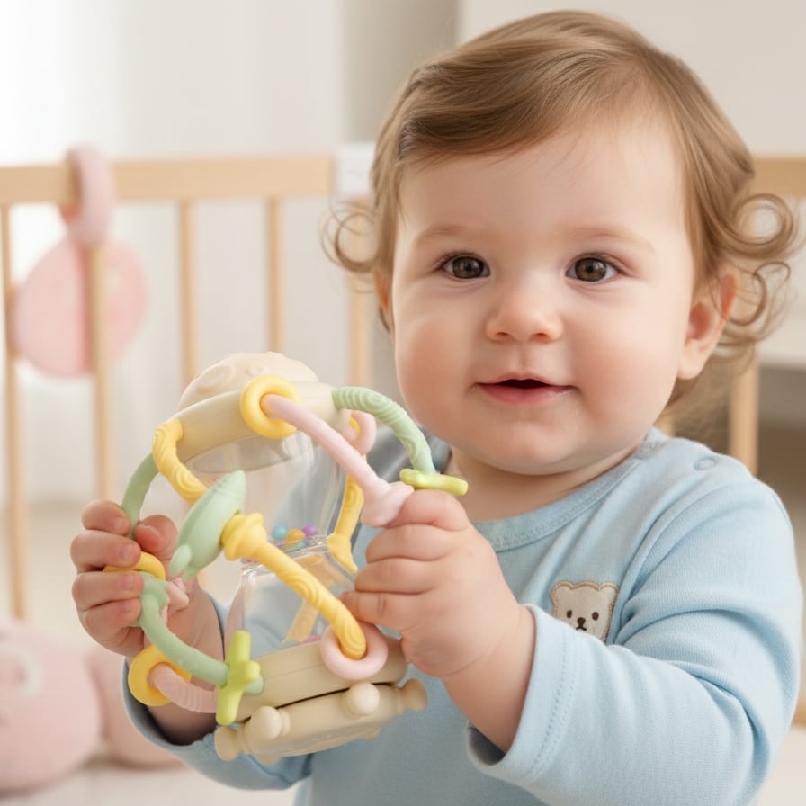 ● 回すとカチカチと音の鳴る仕掛けや、シリコーンのフワフワとした